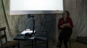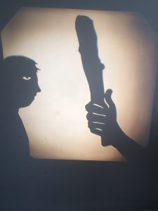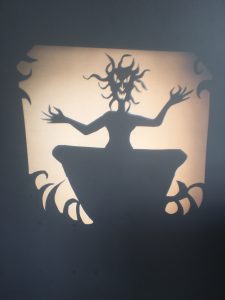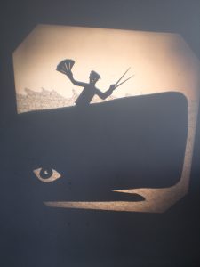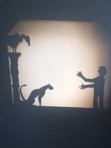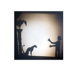 Il est ici question du théâtre d’ombres. D’un côté nous avons une histoire, un conte, un extrait de livre, une œuvre originale, dite par une comédienne, et de l’autre son interprétation à travers le jeu des ombres et du dessin en direct. L’un et l’autre se répondant, avec ça et là le soutien d’une musique ou d’un son. Deux types de spectacles : 20 minutes et 40 minutes