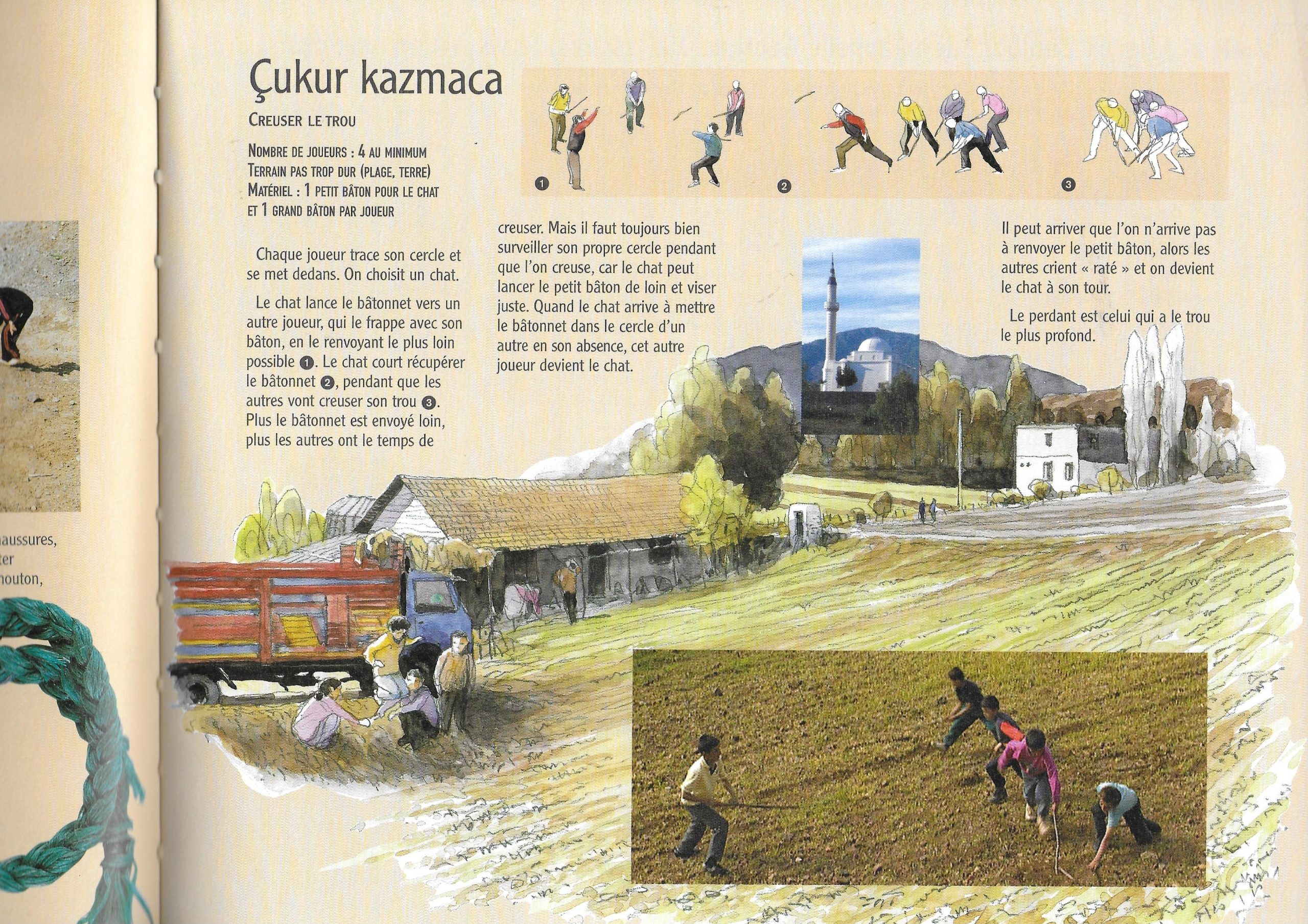 Cet atelier est à destination des enfants et adolescents, il consiste à jouer, mais pas à n’importe quel jeu, des jeux d’extérieur qui existent depuis longtemps, et pour lesquels il n’est pas besoin de dépenser de l’argent car tout ce dont on a besoin se trouve dans la nature. Nous avons conçu cette animation à la suite du tournage d’une série de documentaires, intitulée « jouons « avec les enfants de méditerranée. Cette série a été diffusée dans le monde entier et elle a donné naissance à un livre édité par Gallimard. Le principe de l’atelier est simple ; les enfants et leurs professeurs choisissent un documentaire parmi les 13 réalisés, ils le regardent et découvrent un pays, des enfants, une façon de vivre et des jeux d’extérieur. En, regardant le film ils comprennent les règles des jeux et peuvent ensuite pratiquer ceux-ci. Documentaire et jeux servent de passerelle pour découvrir l’autre et prendre conscience des similitudes entre des vies éloignées.